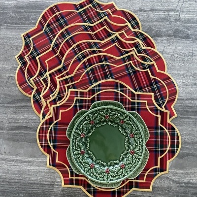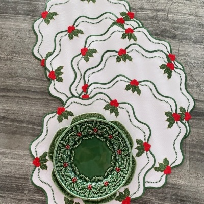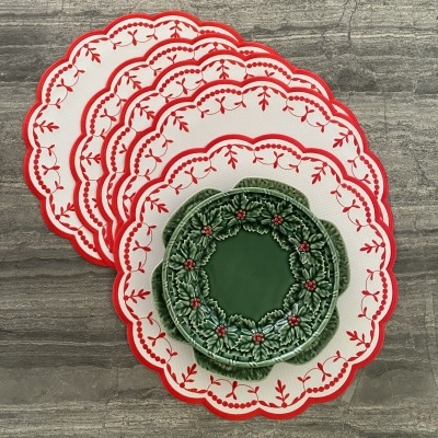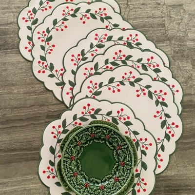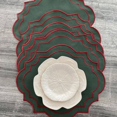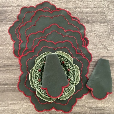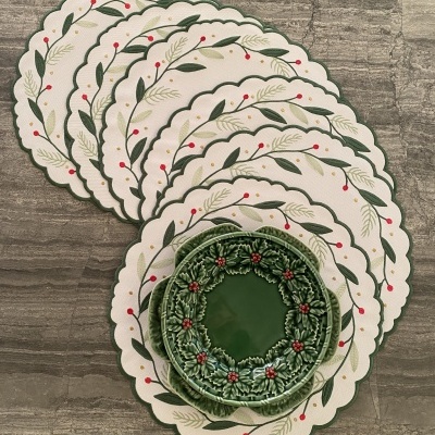 Kit 6 individuais de mesa Lúcia verde/vinho (algodão)