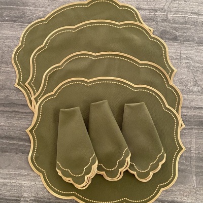 Kit 6 individuais de mesa Lúcia verde/dourado (algodão)